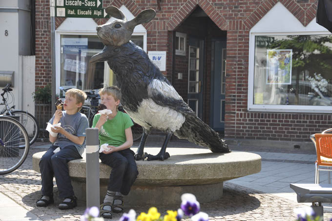 Aske (th) og Toke nyder en is ved et bemærkelsesværdigt kunstværk.