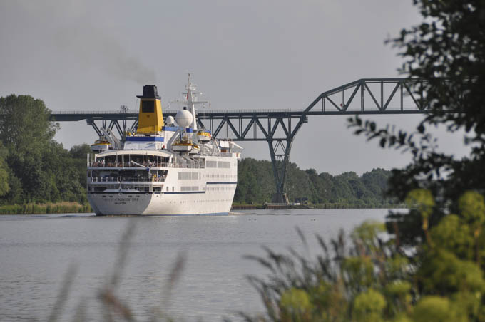 Krydstogtskibet på vej under broen ved Hochdonn.
