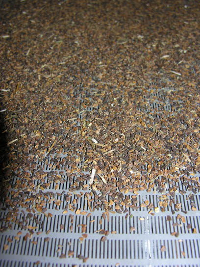 Frøene kan ikke passere gennem hullerne, mens tynde, aflange skaldele og lignende passerer fint ned gennem spalterne.