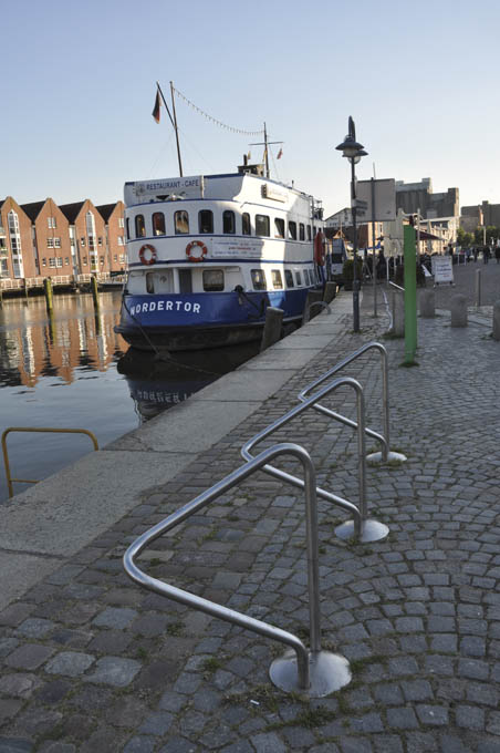 Noget forsinket kom vi afsted, og vi holdt ind i Husum, hvor vi blandt andet så disse arkitekttegnede cykelstativer (eller hva' det nu er for noget).