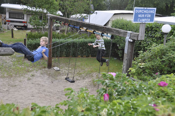 Lørdag morgen kunne Toke og Aske nyde en gyngetur, mens vi ventede på morgenmaden.