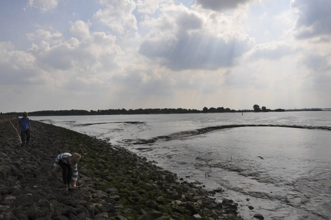 Man kunne få den tanke, at det kunne være sjovt at gå en tur på bunden af Elben ved lavvande. Men gør det ikke....