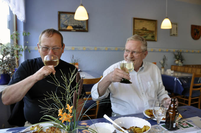 Aftensmad på Campingpladsen, hvor Ib og Erik tyvstartede.