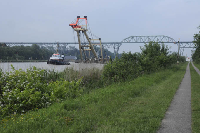 En flydekran passerer.